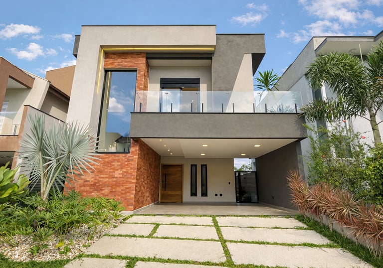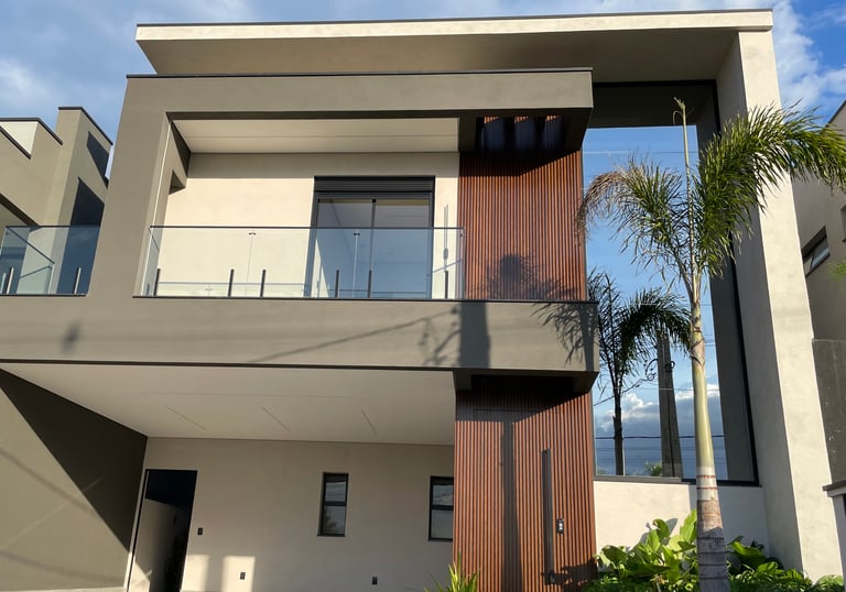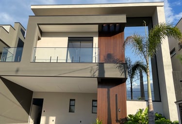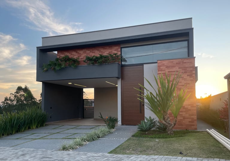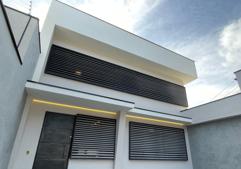 Projeto contemporâneo que combina volumes marcantes e materiais naturais, trazendo elegância e personalidade logo na chegada.