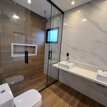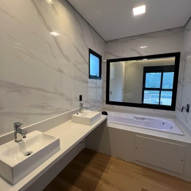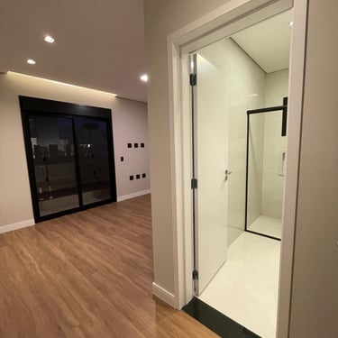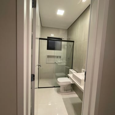 São 3 suítes espaçosas, incluindo uma suíte master com closet generoso e banheiro com ducha e cuba dupla. A infraestrutura para ar-condicionado está presente em todos os ambientes, inclusive na sala, garantindo conforto térmico em todas as estações.