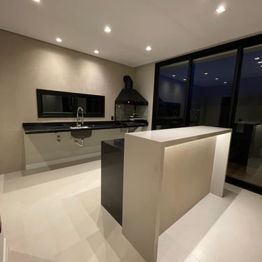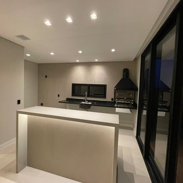 A área social se integra perfeitamente à área gourmet com churrasqueira, criando um espaço ideal para receber. O imóvel conta ainda com lareira a gás, sistema de som embutido no forro e acabamentos impecáveis, que elevam o padrão de sofisticação.