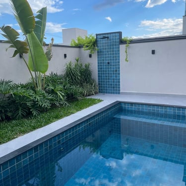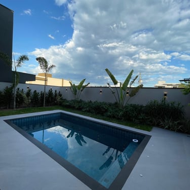 Para momentos de lazer e convivência, o imóvel dispõe de uma área gourmet com churrasqueira, integrada à piscina com iluminação em LED e hidromassagem, criando o ambiente perfeito para receber amigos e familiares.